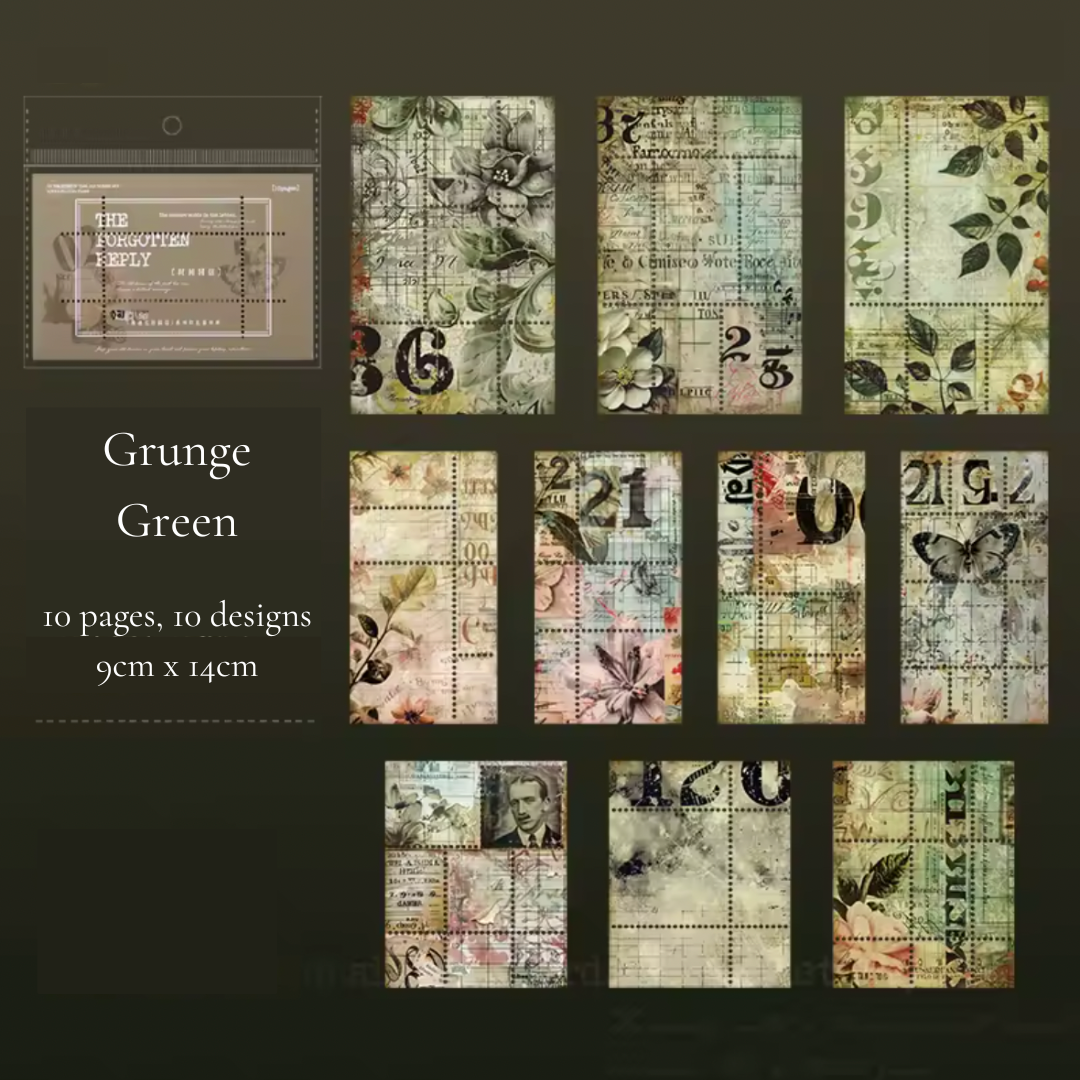 This 10-piece Perforated Stamp Scrapbooking Paper set features soft vintage patterns arranged in charming stamp-style blocks perfect for tearing layering and adding gentle texture to your journals and planners. Each sheet is filled with delicate, muted patterns and timeless details that give your spreads a collected nostalgic feel.